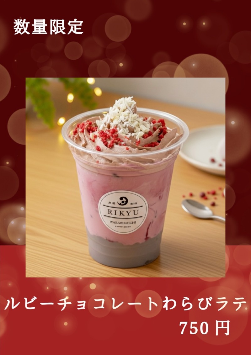 バレンタインシーズン新作【ルビーチョコレート生わらび餅ラテ】